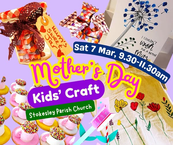 This Saturday (7th March) Stokesley Parish Church will be preparing for Mothering Sunday with children’s crafts in church, 9.30-11.30. Come and make a gift for your mum, or someone who is like a mum to you!