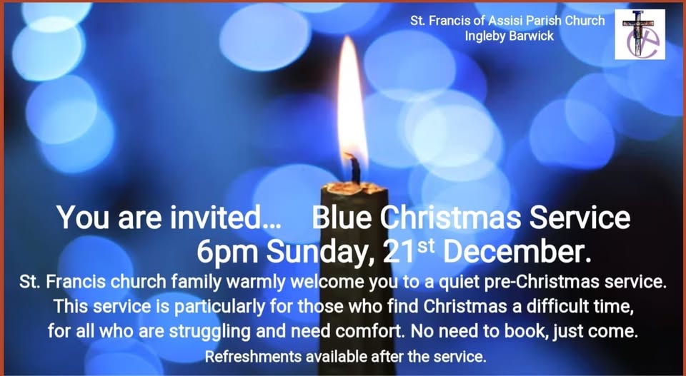 Blue Christmas Service: A quiet Christmas Service for those who find Christmas difficult, and for all who are struggling and need comfort. St. Francis, Ingleby Barwick, Sunday 21st December at 6:00 pm.