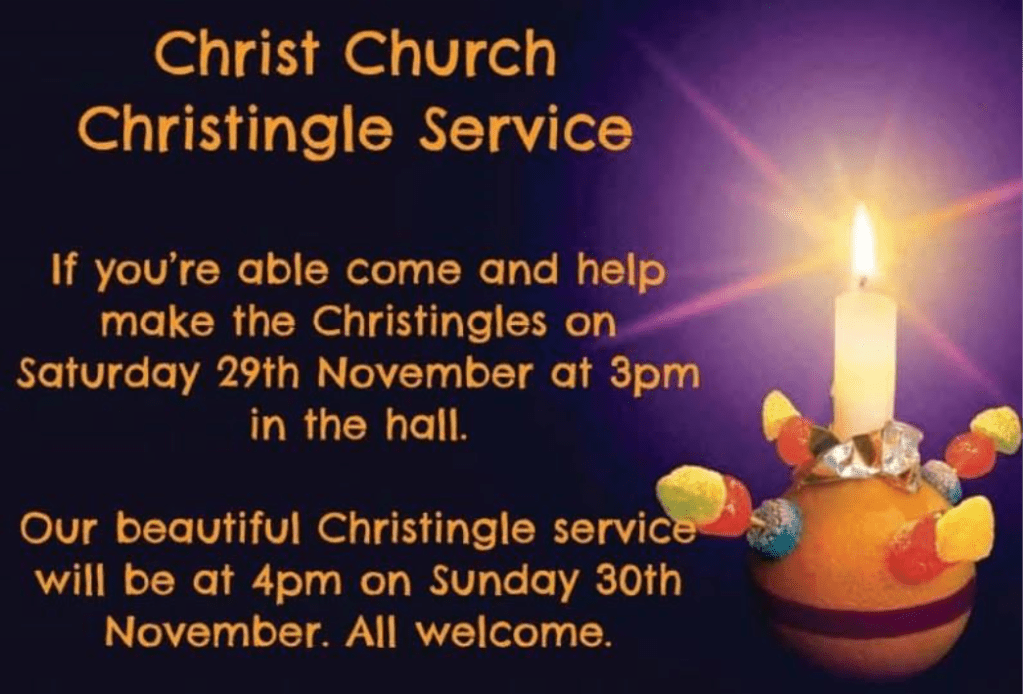 Sunday 30thNovember, at Christ Church, Great Ayton there will be a Christingle Service at 4:00 pm in Church.
