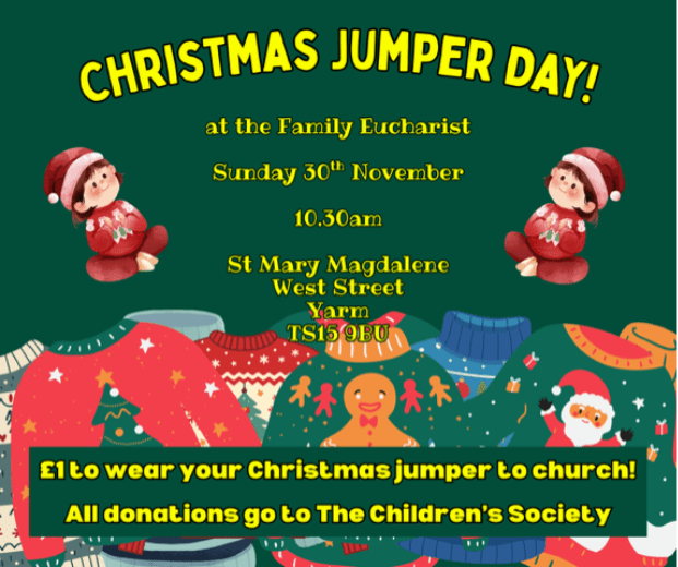 Sunday, 30thNovember 10:30 am, at St. Mary Magdalene, Yarm, it’s Christmas jumper day, in aid of The Children’s Society