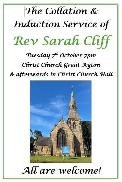 And we also have a new appointment in our Deanery – Tuesday sees the induction of the Revd. Sarah Cliff as Vicar of Great Ayton. Welcome to her, and to her family. Her induction service takes place on Tuesday, 7th October at 7 pm in Christ Church, Great Ayton. All are welcome to attend.